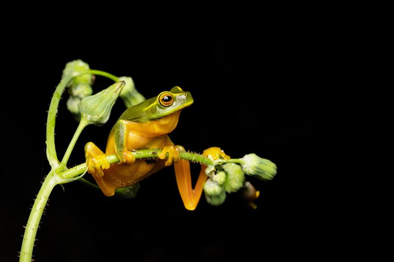 “Graceful tree frogs are typically rather elusive,” Jai Randhawa said of his determination to get the shot. “On this night, however, the approaching storm had these guys in an absolute frenzy. I spotted this individual sitting on this smallest stem poised to head off into the night.”